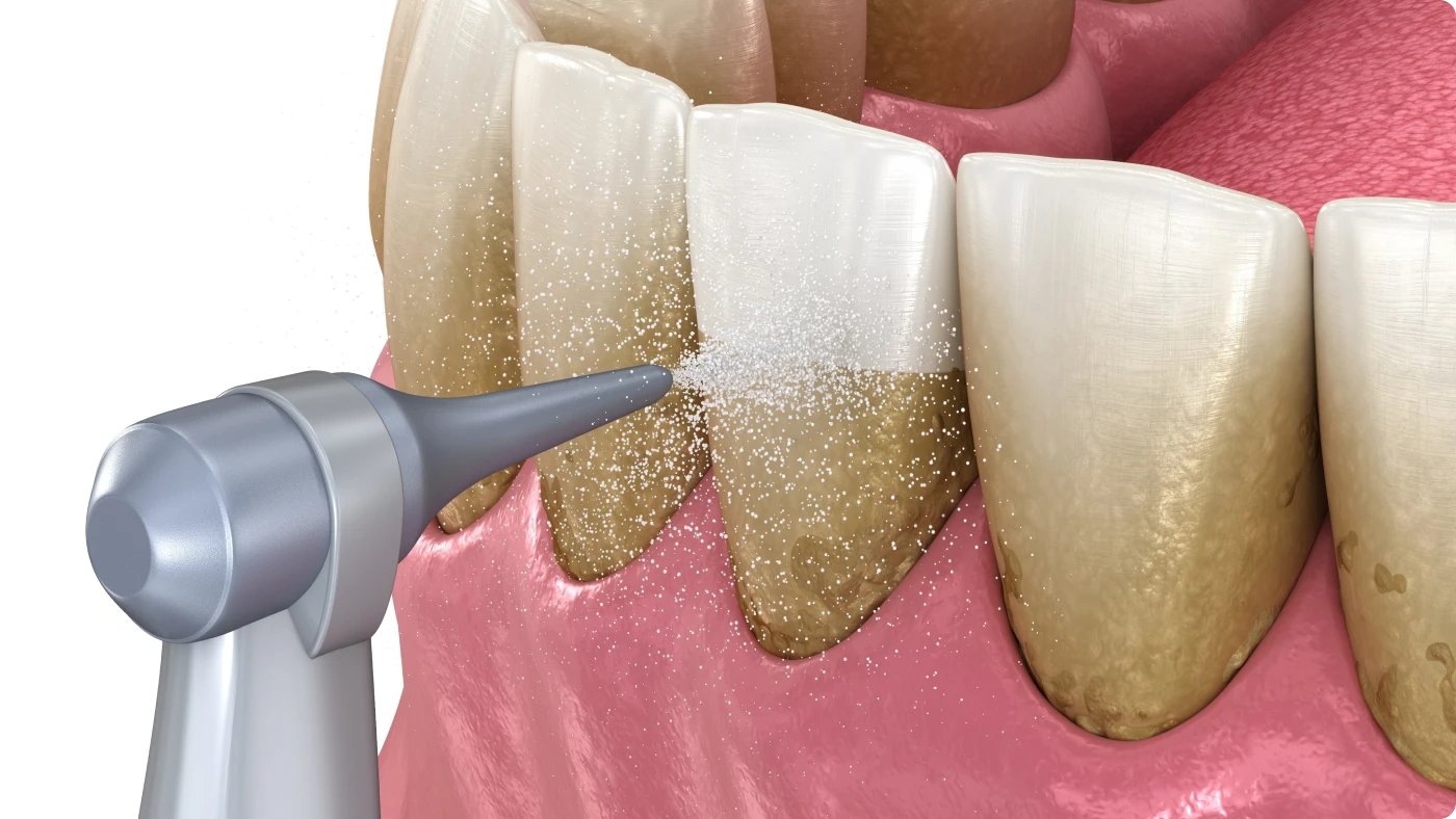 미세한 파우더를 이용하여 치아 표면의 착색과 묵은 때를 부드럽게 제거합니다.